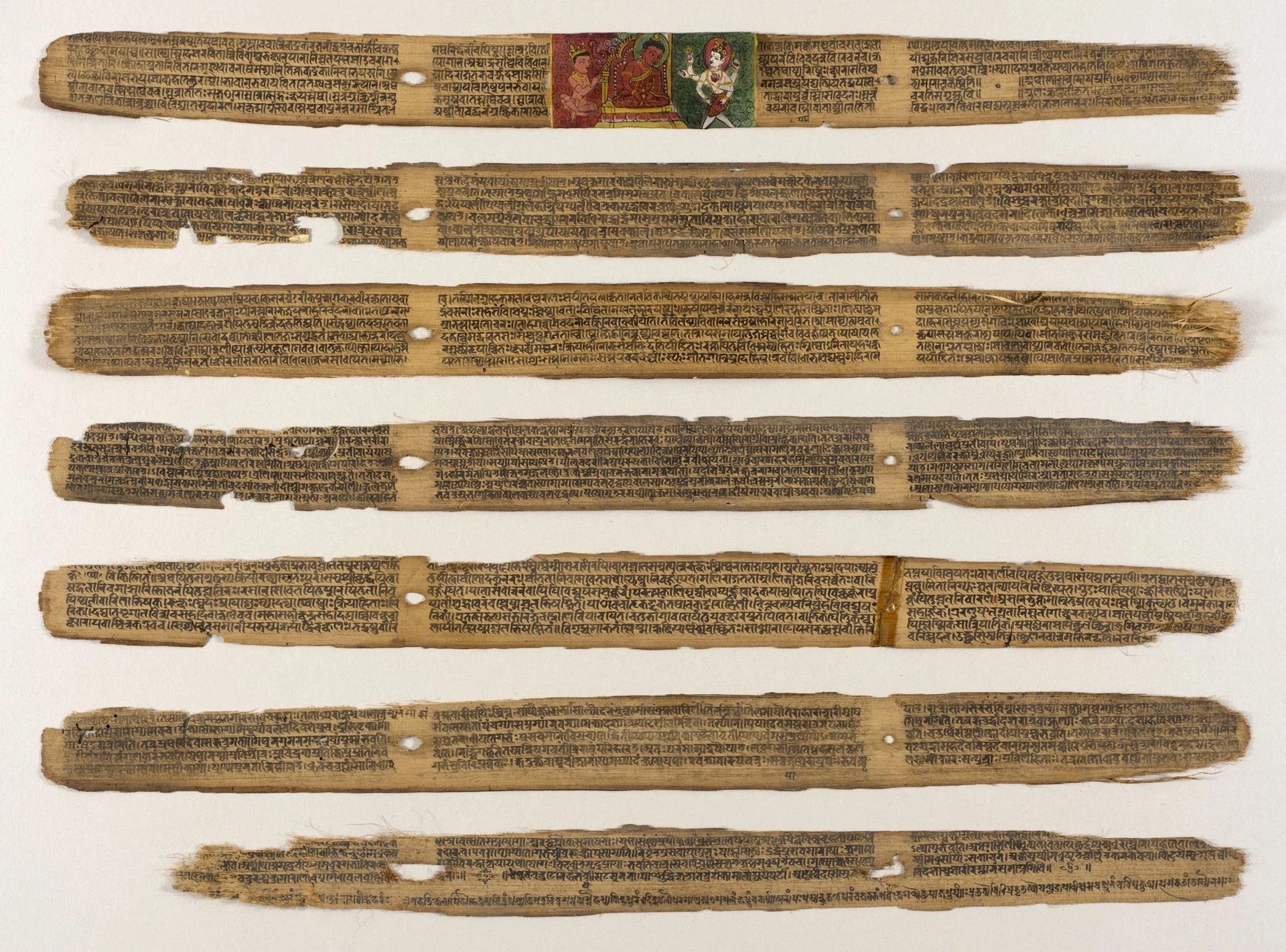 (Ci-dessus : feuilles de palmier de la Suśruta Saṁhitā, conservées au Los Angeles County Museum of Art.)